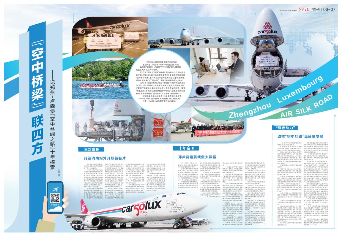 【河南日報】“空中橋梁”聯(lián)四方———記鄭州-盧森堡“空中絲綢之路”十年探索