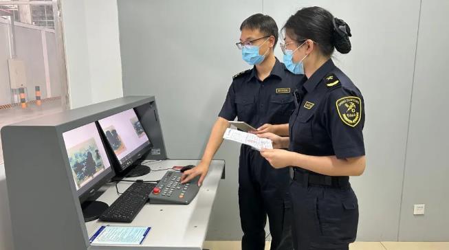 8月2日,中國鄭州機(jī)場海關(guān)關(guān)員用X光機(jī)對進(jìn)口貨物開展非侵入式查驗(yàn)。新華社發(fā)(鄭州機(jī)場海關(guān)供圖)