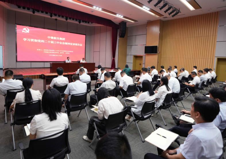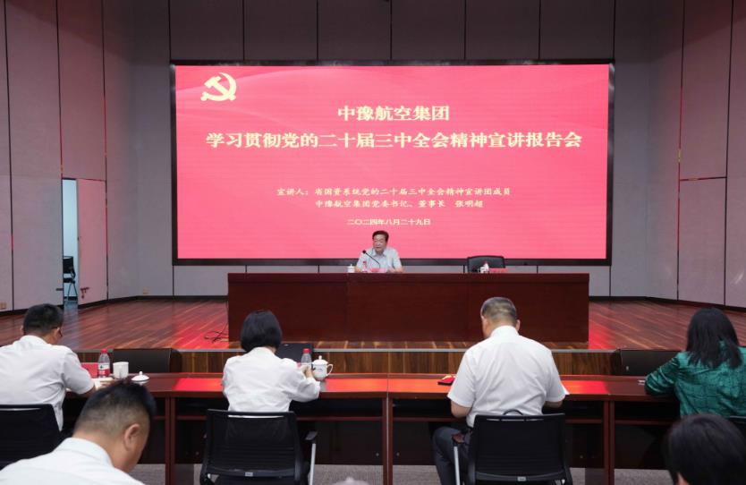 8月29日,按照省委和省政府國資委黨委部署,中豫航空集團(tuán)舉行學(xué)習(xí)貫徹黨的二十屆三中全會精神宣講報告會。省國資系統(tǒng)宣講團(tuán)成員,中豫航空集團(tuán)黨委書記、董事長張明超作宣講報告,黨委副書記、總經(jīng)理、副董事長柳建民主持會議,集團(tuán)領(lǐng)導(dǎo)班子在鄭成員、中層管理人員、青年員工代表約300人參會。