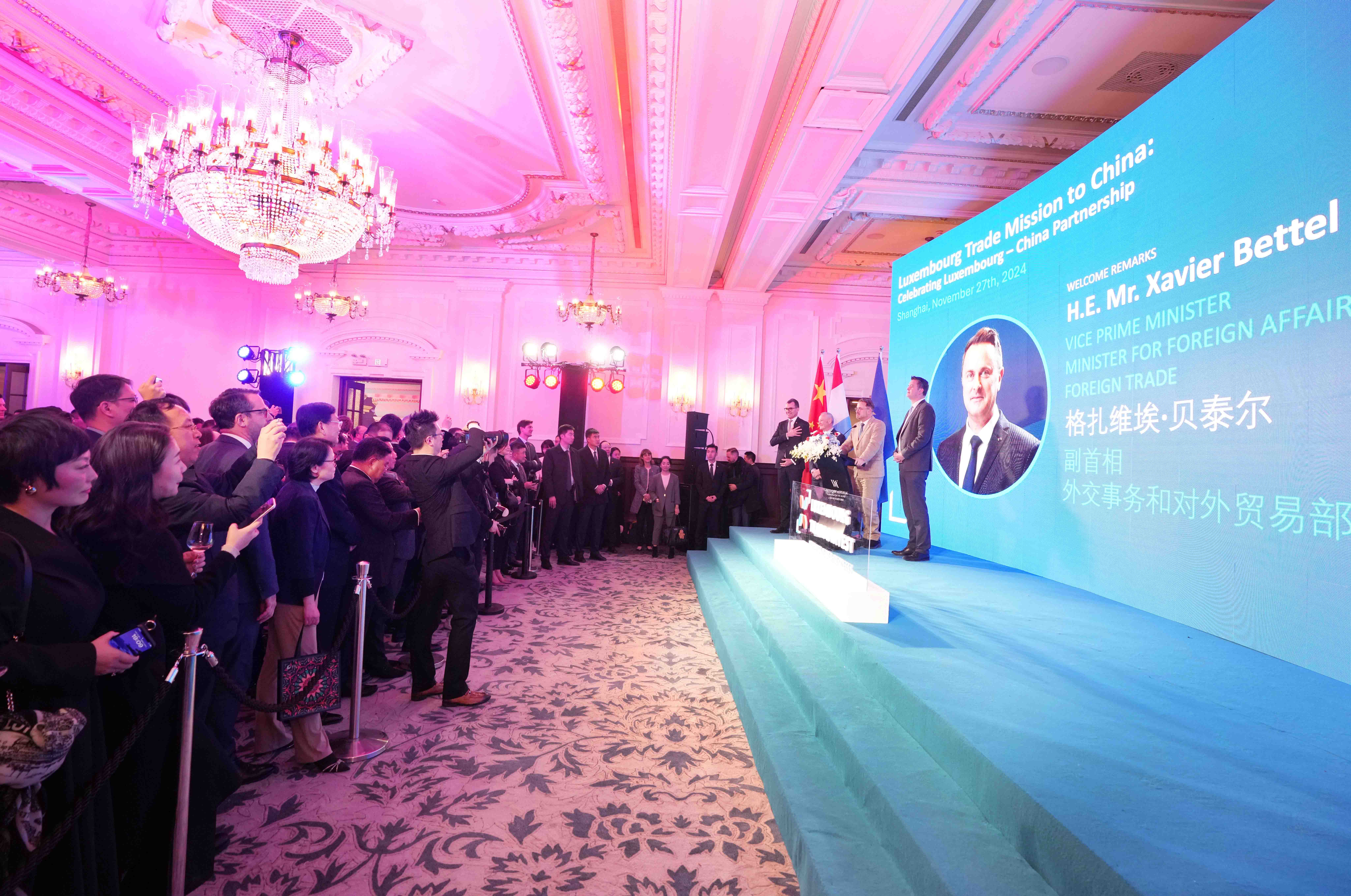 11月27日,盧森堡-中國(上海)商務(wù)合作論壇在上海舉行。盧森堡副首相兼外交、外貿(mào)大臣格扎維埃·貝泰爾,盧森堡經(jīng)濟(jì)、中小企業(yè)、能源和旅游大臣萊克斯·德勒斯,駐華大使盧睿朗等出席。中豫航空集團(tuán)黨委書記、董事長張明超受邀參加,并在盧森堡大公國商貿(mào)團(tuán)訪華官方招待會(huì)上與貝泰爾、盧睿朗等就促進(jìn)鄭盧“空中絲綢之路”建設(shè)溝通交流。