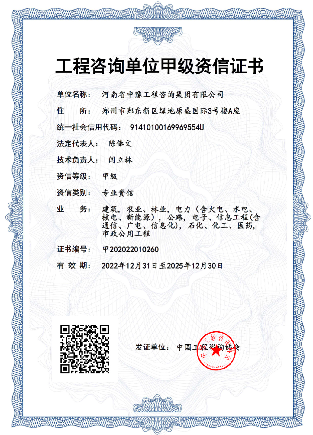 工程咨詢資信等級(jí)是衡量工程咨詢企業(yè)綜合實(shí)力的重要標(biāo)志,也是工程咨詢企業(yè)發(fā)展的重要基石。甲級(jí)綜合資信可以作為所有專業(yè)規(guī)劃咨詢和評(píng)估咨詢業(yè)務(wù)能力的參考。目前,中豫咨詢集團(tuán)已獲得工程咨詢單位甲級(jí)綜合資信和7個(gè)甲級(jí)專業(yè)資信,企業(yè)綜合實(shí)力邁上新臺(tái)階。