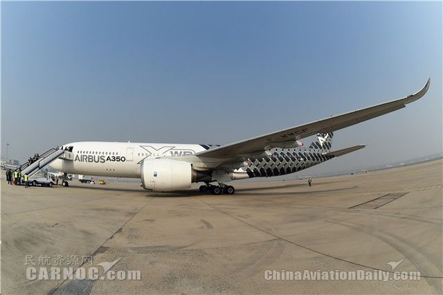 11月2日一架身披碳纖維特殊涂裝的空客A350-900測試飛機飛抵北京首都國際機場,并在11月3日進行展示。A350是目前世界上最先進的遠程寬體飛機。北京是空客A350中國巡演活動的第三站,之前這架生產(chǎn)序列號為MSN2的測試飛機已經(jīng)訪問了珠海和???,接下來它還將飛抵上海、廣州和成都進行靜態(tài)和飛行展示。